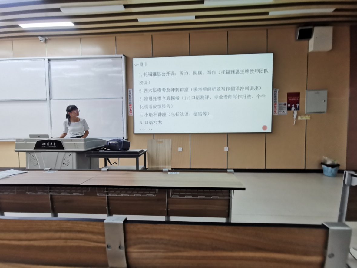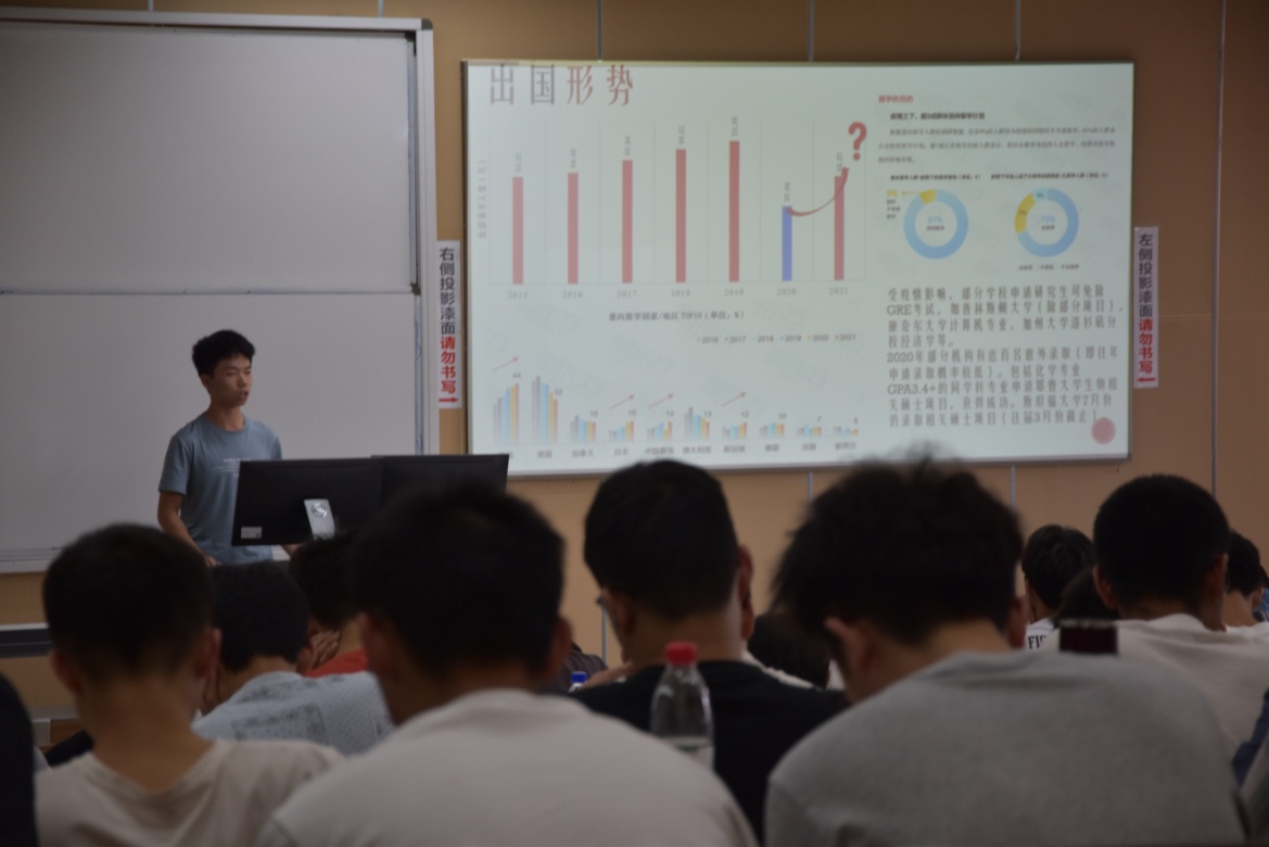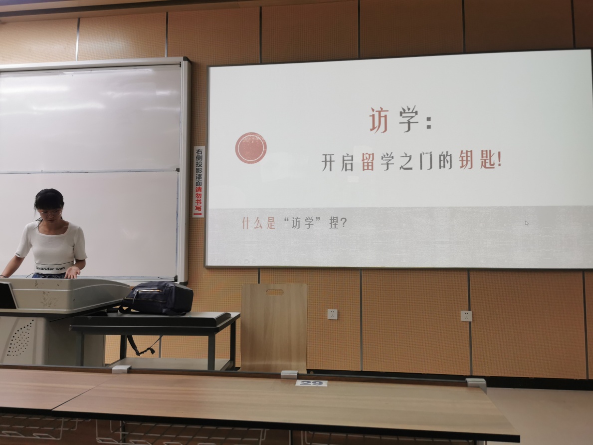 宣讲团同学首先介绍了大川视界的背景与意义,介绍了具体的访学项目情况,同学们对访学项目和大川视界有了初步了解。宣讲团随后详细分析了保研、考研、出国留学的形势,让同学们对未来规划有更清晰的认识。他们还结合往届学长学姐们的经验分享和所学所获,向同学们具体介绍了访学项目的诸多优势以及学校对访学项目的资助政策以及大川视界举办的语言能力提升活动等等,宣讲活动为同学们提供了很大的帮助。