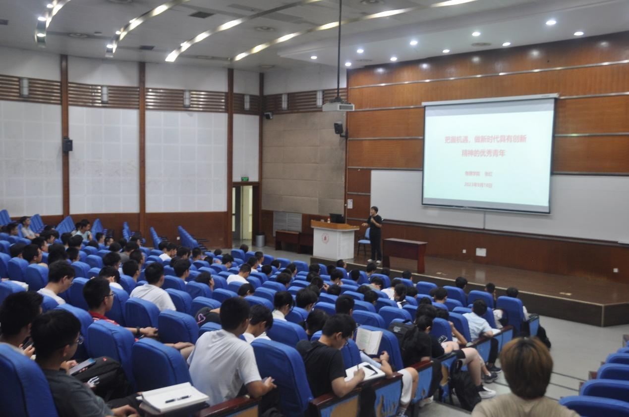 2023年9月18日晚,德赢winac米兰院长张红教授在江安校区综合楼C407为德赢winac米兰2023级本科新生讲授思政课,课程以“把握机遇,做新时代具有创新精神的优秀青年”为主题,讲座由2023级新生辅导员许元军主持。