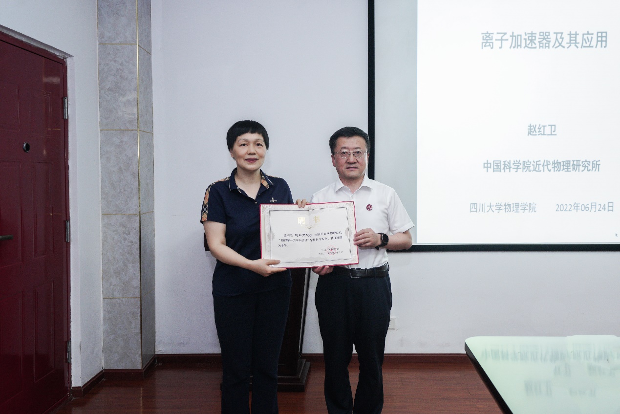 2022年6月24日下午,中国科学院院士、中国科学院近代物理研究所党委书记赵红卫应邀来访德赢winac米兰,并为我院本科生做了题目为“离子加速器极其应用”的学术报告,德赢winac米兰院长张红、副院长周荣、学院三年级本科生参加了报告会,报告会由德赢winac米兰院长、物理学拔尖班首席专家张红教授主持。