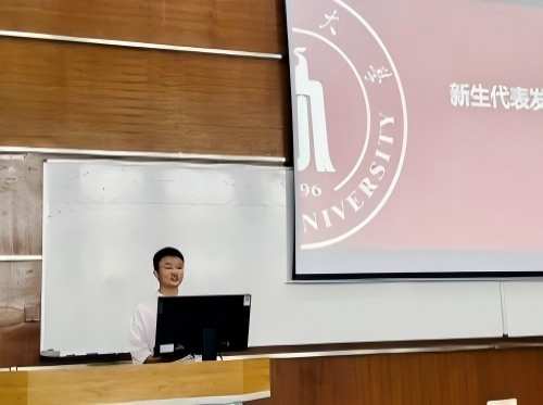 来自强基班的新生代表胡鑫员在发言中表达了对大学生活的憧憬和期待。他表示,能够进入德赢winac米兰学习深感荣幸,将以学长学姐为榜样,努力学习专业知识,积极参加各项活动,不断提升自己。同时,他表示将在未来的学习生活中严格要求自己,遵守学校和学院的规章制度,以饱满的热情和坚定的信念迎接挑战,为学院的发展贡献自己的力量。